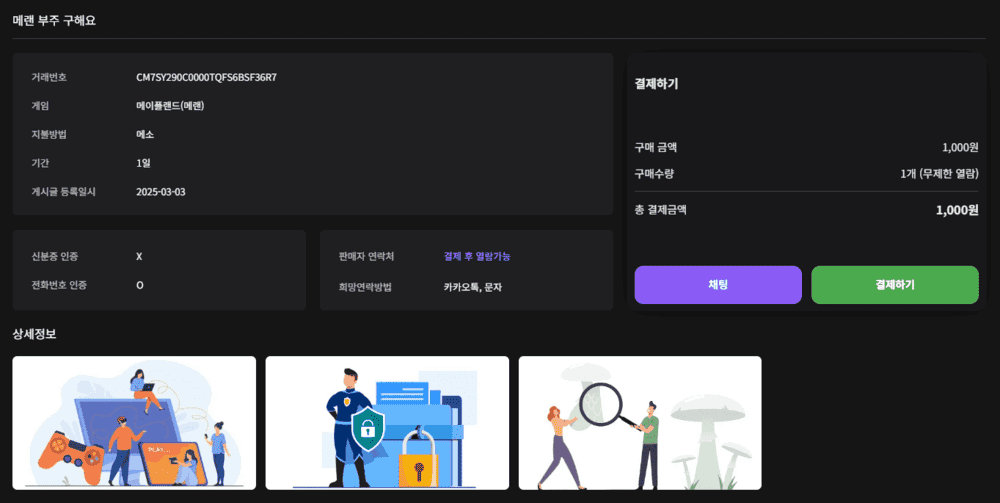 링킹게임에서는 로그인을 하지않아도 게임(메랜, 메이플스토리 등) 부주를 구하는 구인공고나 부주를 지원하는 구직공고를 볼 수 있지만 부주 의뢰자와 지원자와의 채팅, 정보 열람을 위한 구매 등을 위해서는 로그인을 해야해요.